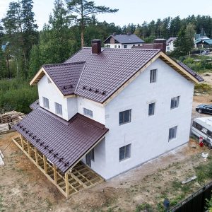 Для скатов, у которых уклон задается простой стропильной системой, в качестве опор используются несущие стены сооружения и перегородки внутри (при их наличии). Кровельным материалом выступает мягкая черепица, профлист, ондулин, металлочерепица, еврошифер.